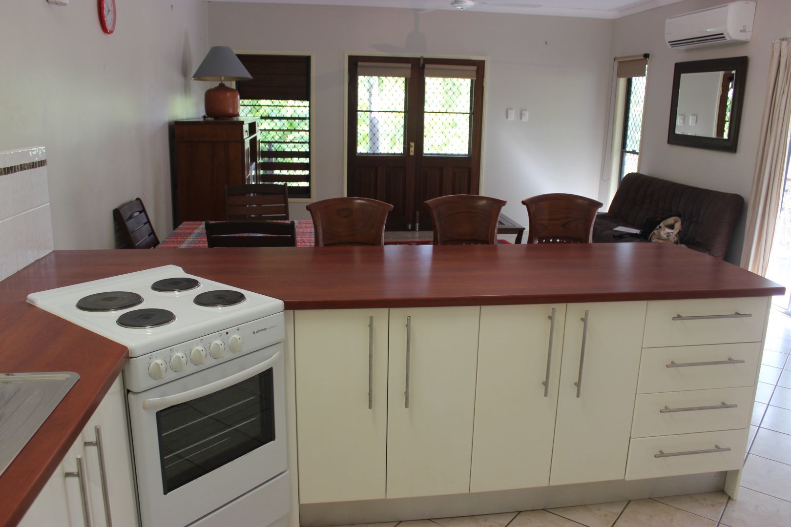 The unit is just a few minutes walk to the local supermarket, and is fully furnished, security screened and air conditioned.