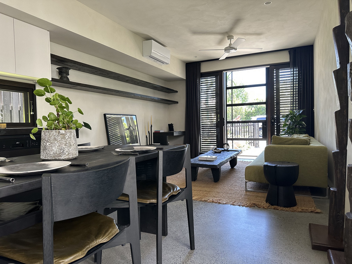 This newly built fully detached townhouse situated in the Byron hinterland town of Bangalow, offers a unique and stylish living experience. Renowned designer Frank Macchia has brilliantly integrated modern design with this bespoke addition to the character-filled homes that make up the charming neighbourhood. Embrace the tranquility of the east and north facing garden upon entering the property. The outdoor seating creates a perfect spot for thoughtful conversations or simply to enjoy your morning tea or coffee.