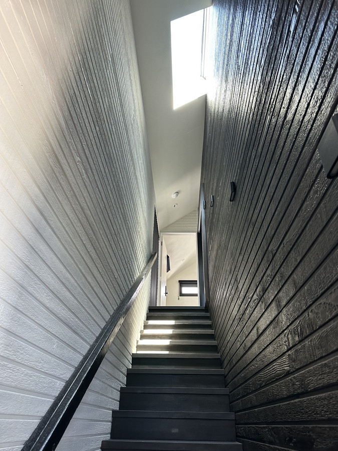 A unique feature of this home is the partial external transition space (under cover) which separates the two levels, ensuring superior acoustic privacy. As part of the layered living approach, the upstairs area features two private self-contained bedroom wings each with its own ensuite, high vaulted ceilings, split system air con, ceiling fans and built in robes. Ideal for 2 couples/individuals or a small family. The two luxurious ensuites and an additional separate powder room feature contemporary design elements and are quipped with modern fixtures and high end finishes.