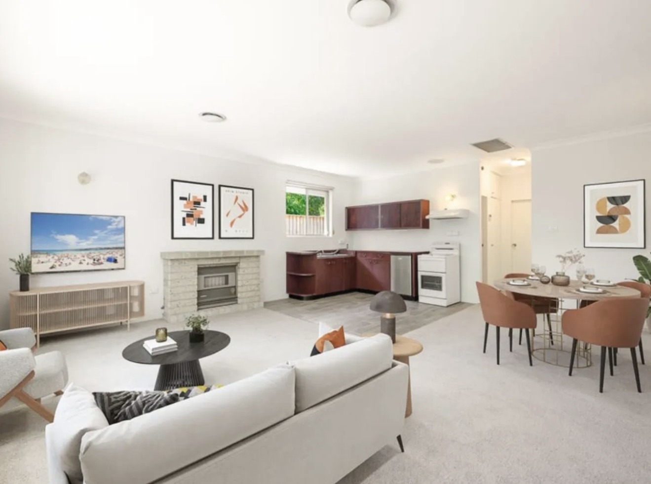 * Two generous bedrooms, the main with built-in wardrobes. * Functional kitchen with bar fridge.