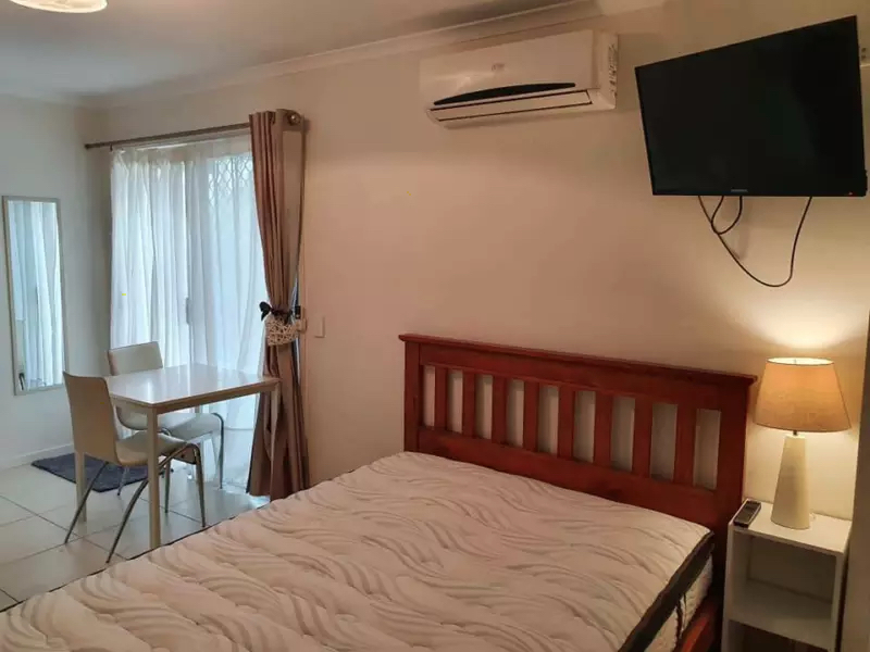 Fenced & secure own private entry into your own yard, low maintenance. Double bed has new mattress with large built-in robe with storage. Full electric upright stove. Kitchenette. Large ensuite. Bus 4 min walk from front door, large shopping centre close by. Only $240 per week includes internet, gas & electricity. Bond of 2 weeks, $100 dep on key.