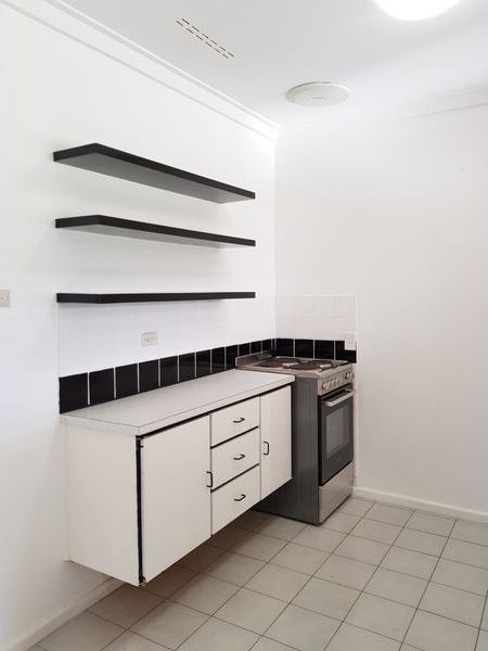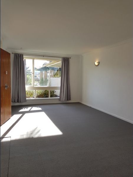 Open plan lounge/dining with street outlook and filled with natural light, plus neatly presented kitchen. New electric stove/oven.